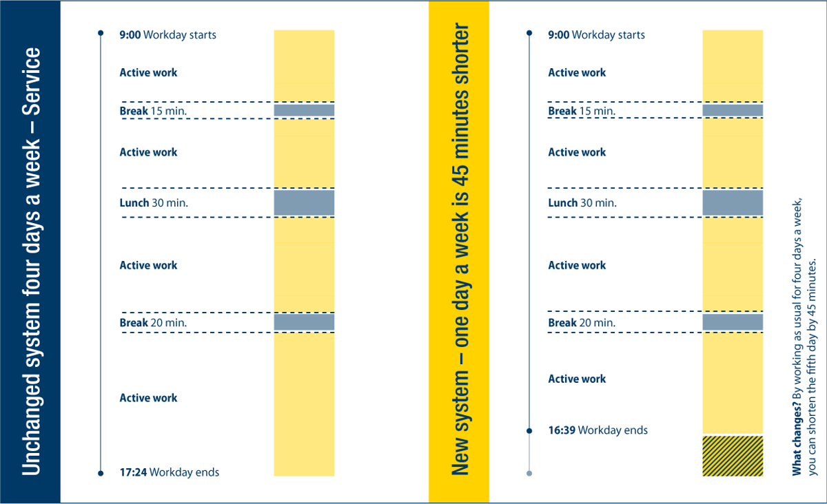 Example of arrangements within a company: Unchanged attendance except one day a week
