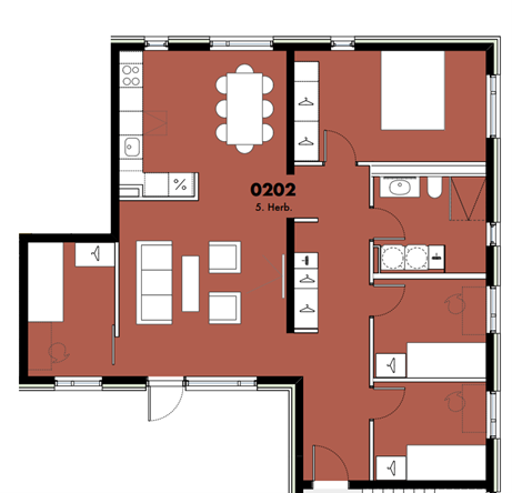 Íbúðirnar eru í fjórum mismunandi stærðum: ýmist með einu, tveimur, þremur eða fjórum svefnherbergjum. Hægt er að skoða lýsandi teikningar fyrir hverja íbúðarstærð hér fyrir neðan.